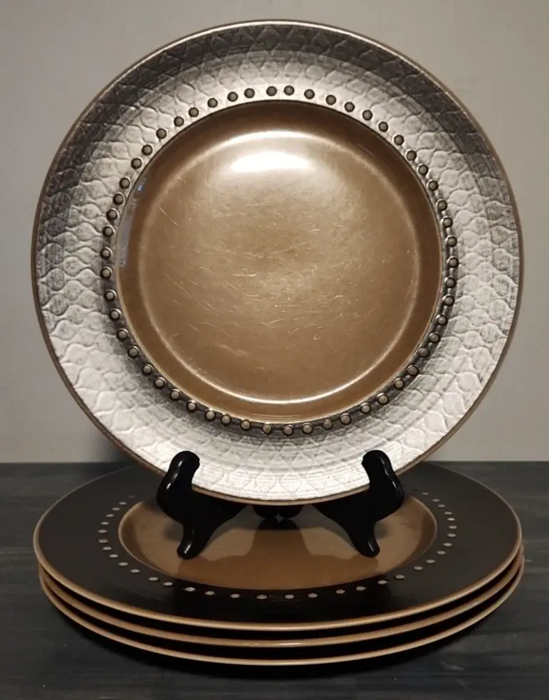 MCM 10.5" Dinner Plate Flintridge China California Script Gold 1969